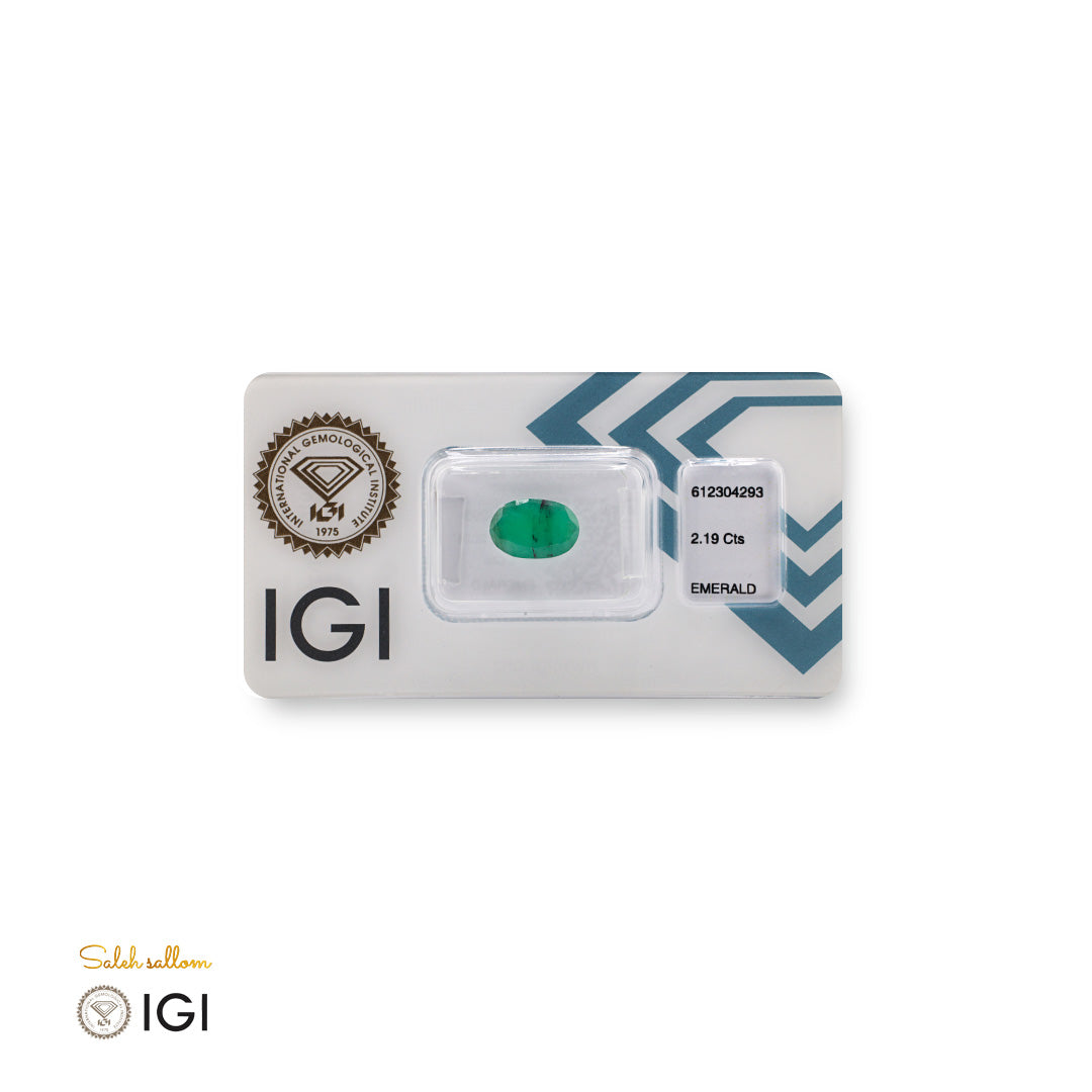 This Natural Emerald (2.19 Ct) stands out with its rich, velvety green hue and remarkable depth — a gem that captures the timeless essence of natural beauty. Certified by the International Gemological Institute (IGI), it is a verified treasure of authenticity and distinction, reflecting the artistry of nature and the precision of gemological science.
